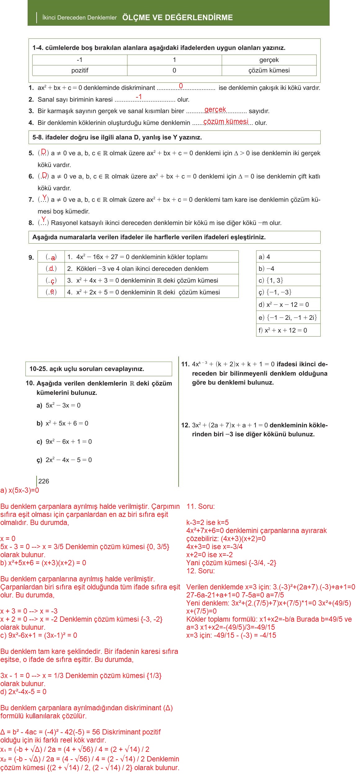 10. Sınıf Meb Yayınları Matematik Ders Kitabı Sayfa 226 Cevapları