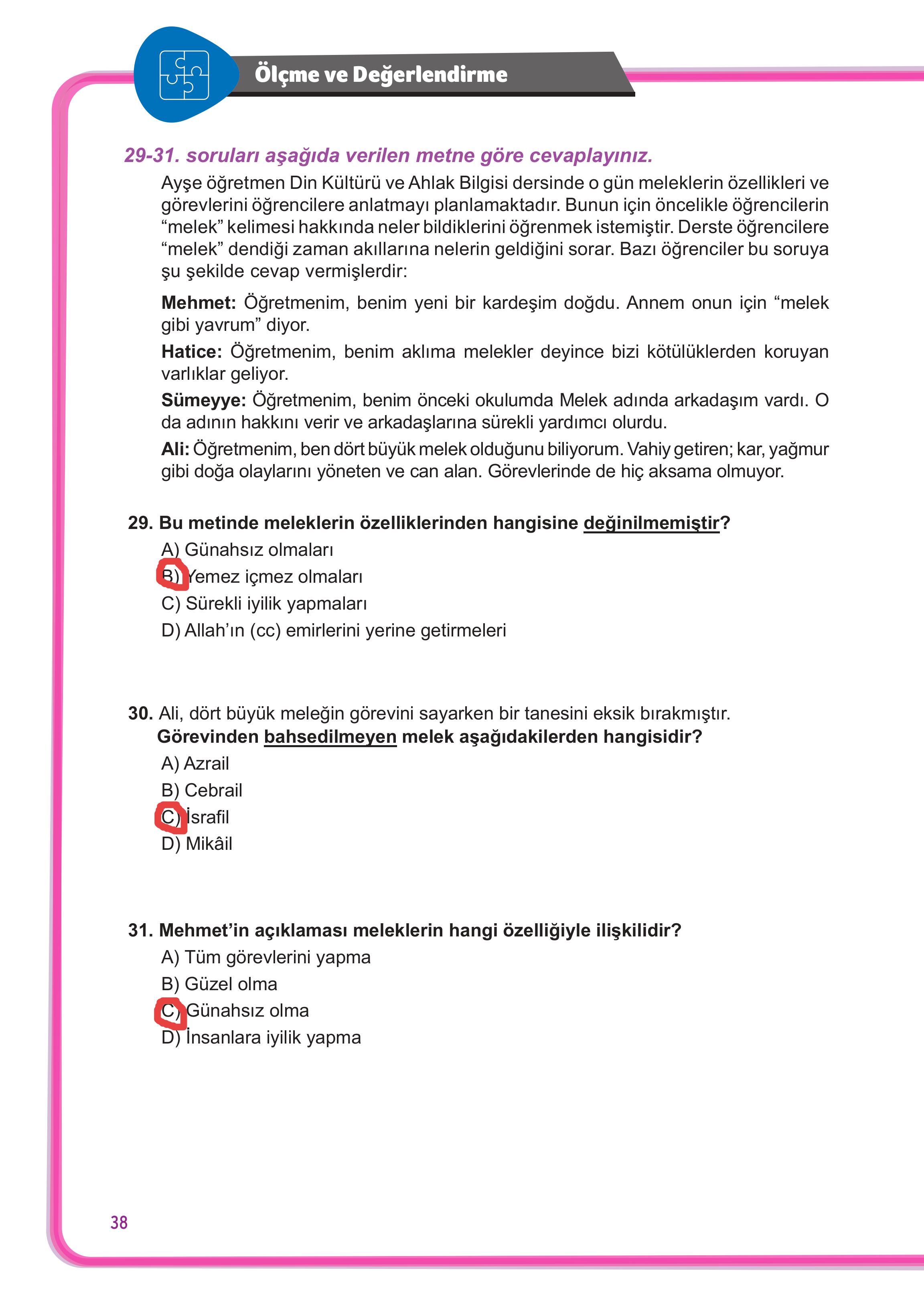 7. Sınıf Meb Yayınları Din Kültürü Ve Ahlak Bilgisi Ders Kitabı Sayfa 38 Cevapları