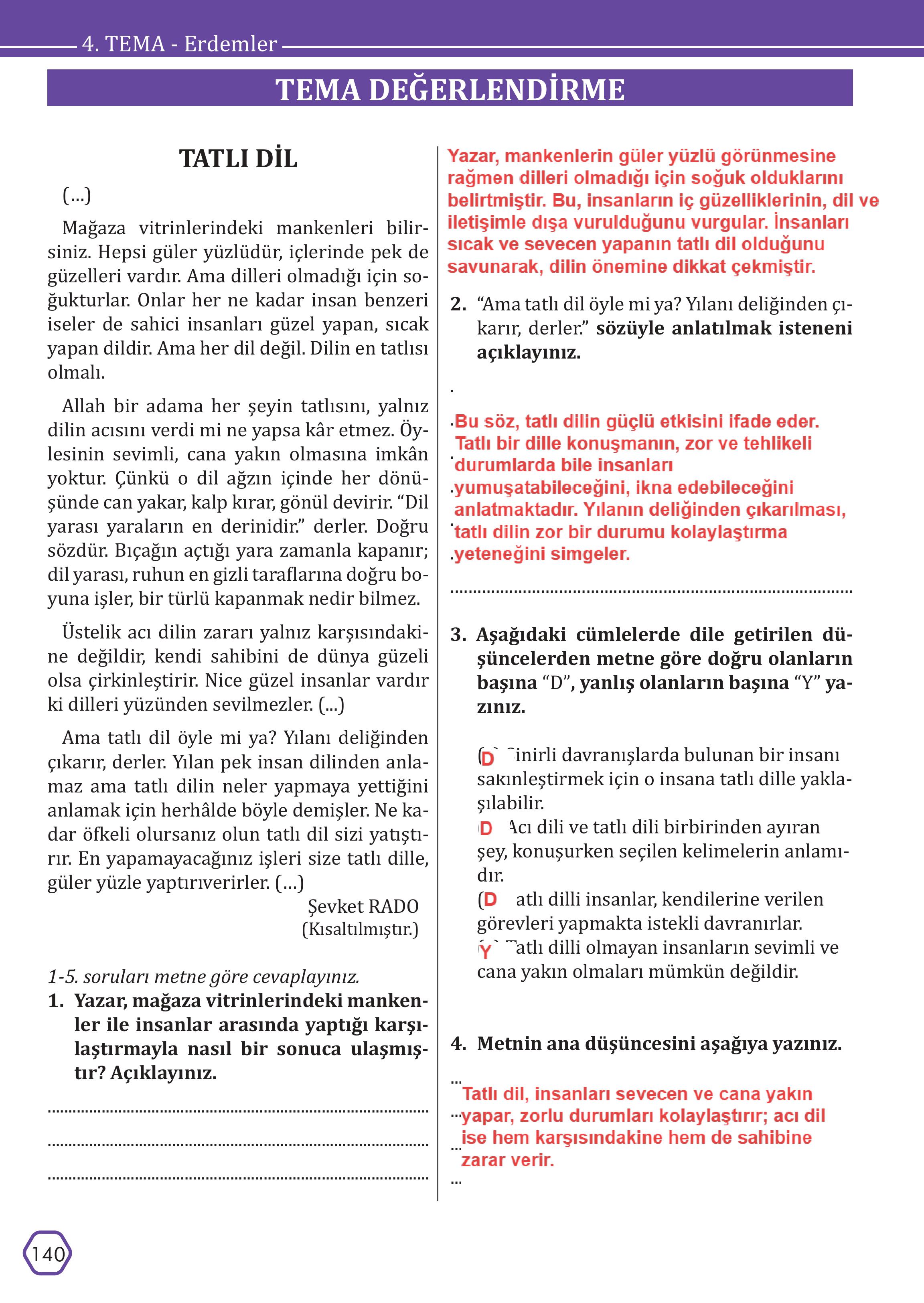 7. Sınıf Meb Yayınları Türkçe Ders Kitabı Sayfa 140 Cevapları