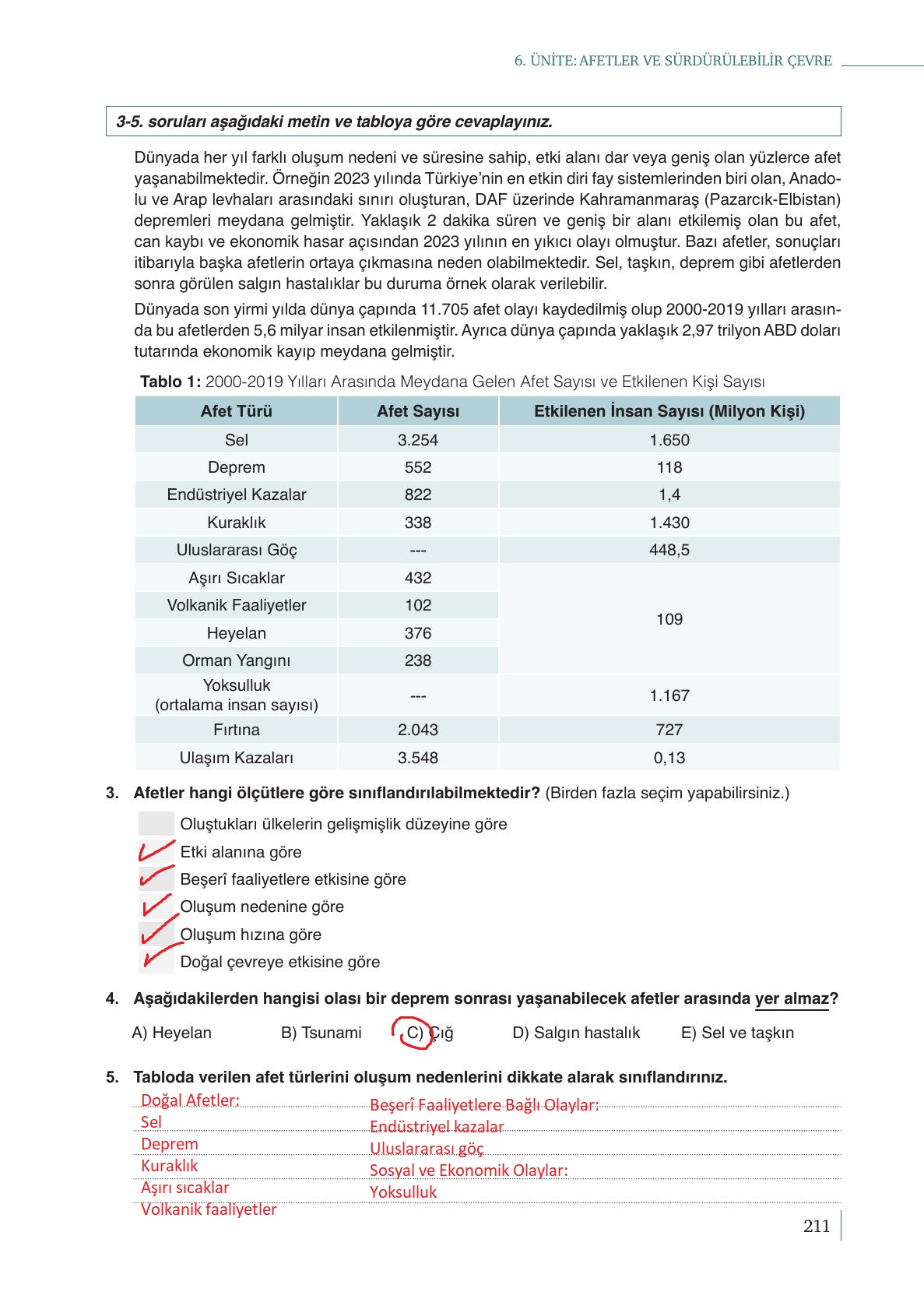 9. Sınıf Meb Yayınları Coğrafya Ders Kitabı Sayfa 211 Cevapları