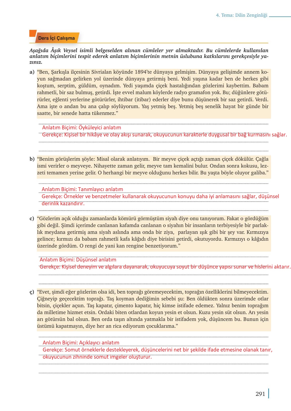 9. Sınıf Meb Yayınları Edebiyat Ders Kitabı Sayfa 291 Cevapları