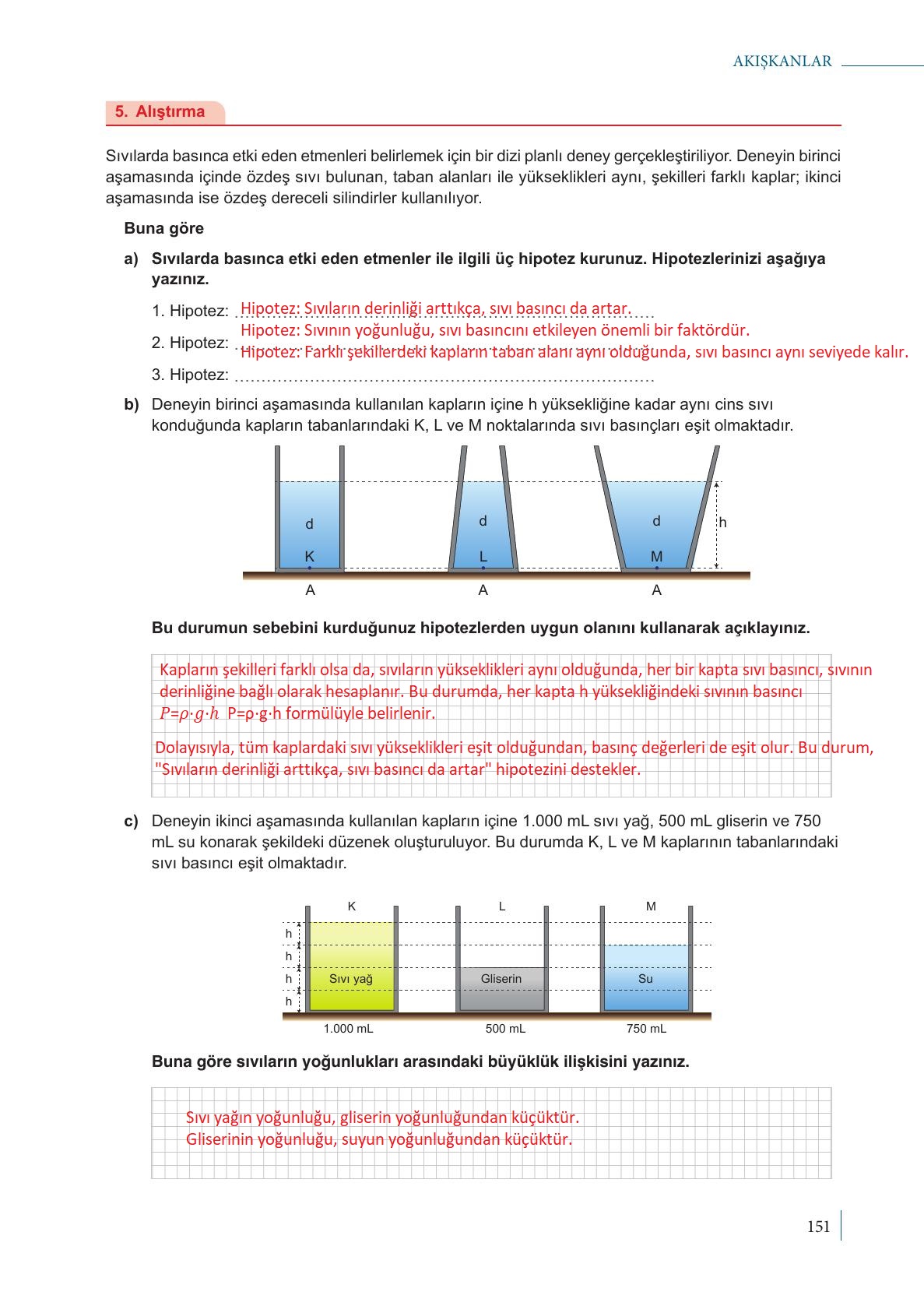 9. Sınıf Meb Yayınları Fizik Ders Kitabı Sayfa 151 Cevapları